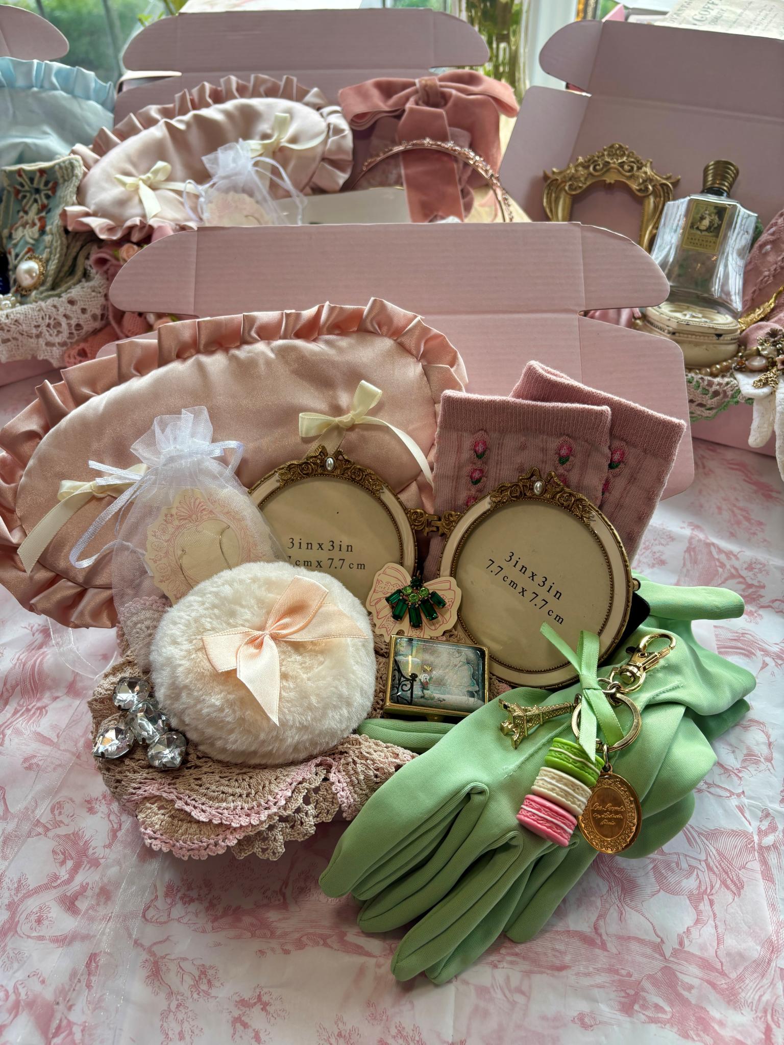 Inside every box, you’ll find a curated collection of timeless keepsakes, delicate trinkets, and dazzling accessories. Think glimmers of gold, soft ribbons, romantic curiosities, and little treasures that feel as if they’ve been discovered in a Parisian attic on Christmas Eve.