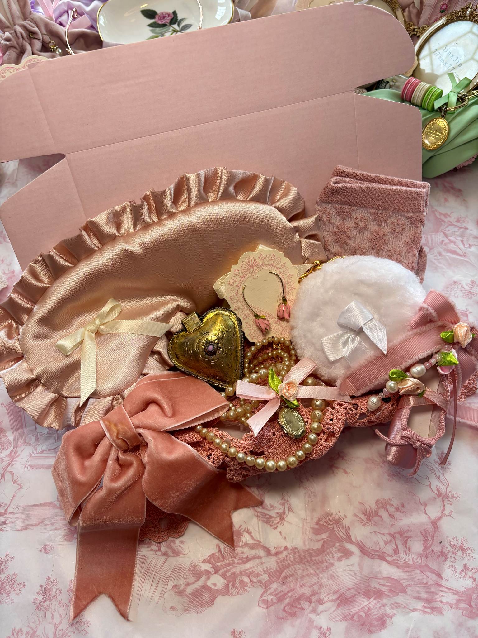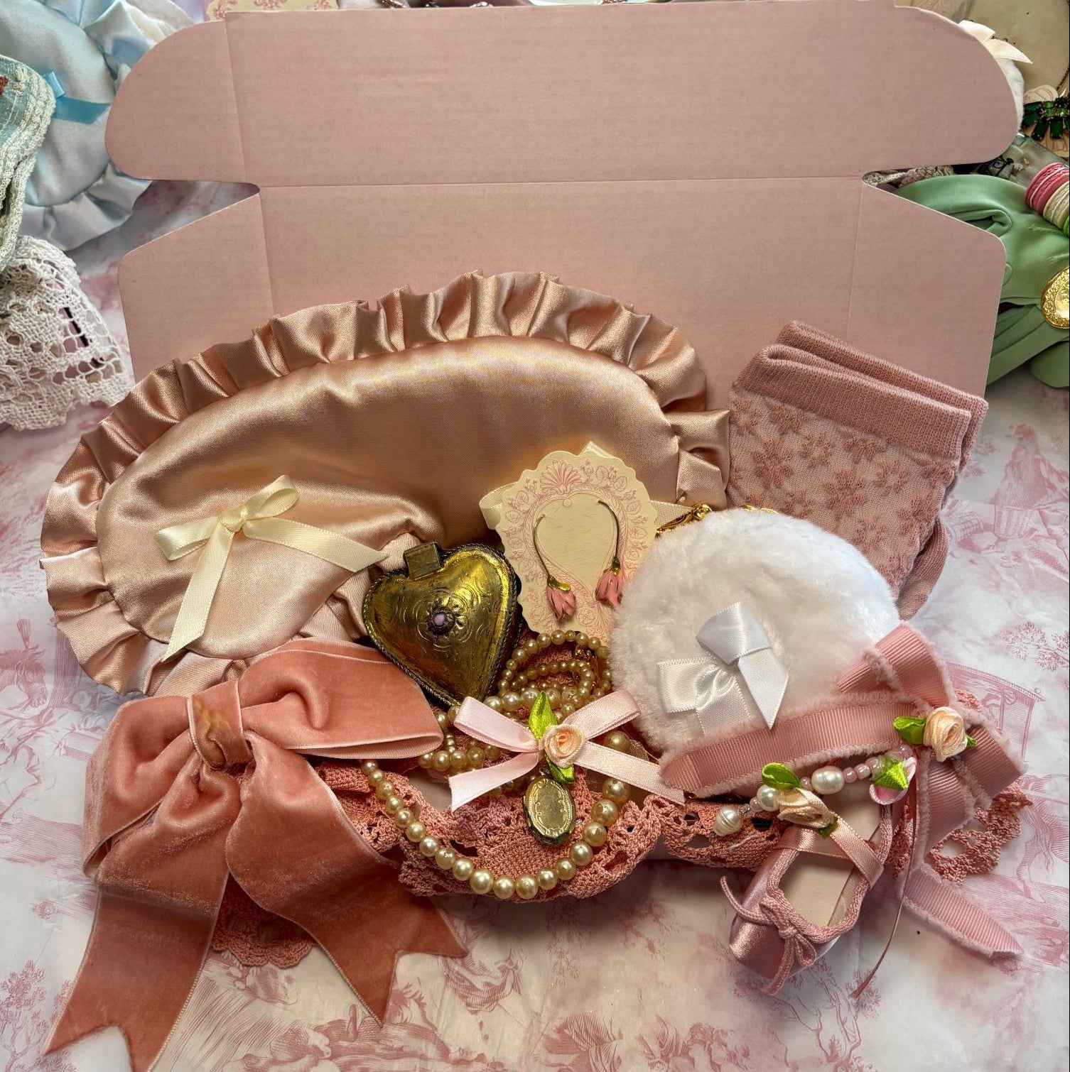 Inside every box, you’ll find a curated collection of timeless keepsakes, delicate trinkets, and dazzling accessories. Think glimmers of gold, soft ribbons, romantic curiosities, and little treasures that feel as if they’ve been discovered in a Parisian attic on Christmas Eve.